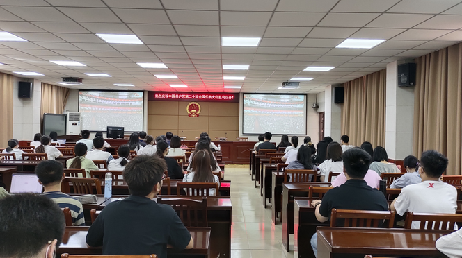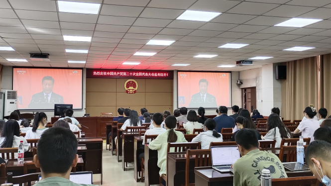 2022年10月16日上午10时,中国共产党第二十次全国代表大会在北京人民大会堂隆重开幕。为深刻学习会议内容和会议精神,加强党性修养,坚定初心使命,jdb电子游戏官方网站第一时间组织师生代表在jdb电子游戏官方网站201教室收看大会直播,认真聆听习近平同志代表第十九届中央委员会向大会作的报告。学院党政班子成员、各党支部书记,以及部分师生党员代表到场观看直播。