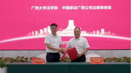 院党委书记余云宇与广西移动法务部主任伍剑威签订共建协议