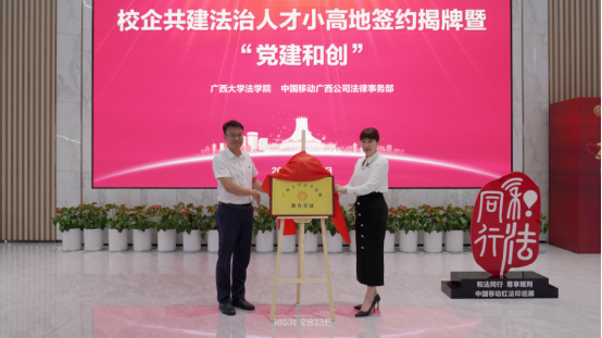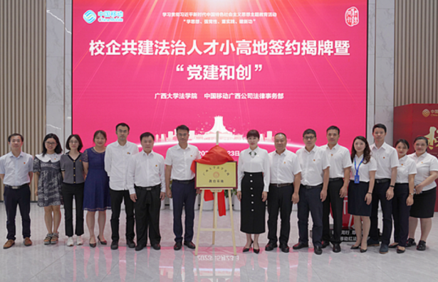 5月23日上午,院党委书记余云宇带队赴中国移动广西公司访问并举行共建“jdb电子游戏官方网站法学实践教育基地”签约揭牌仪式。中国移动广西公司副总经理、工会主席、总法律顾问何玲,法律事务部总经理伍剑威,jdb电子官网副院长陈刚及各党支部书记、院工会委员等师生代表参加签约揭牌仪式和研讨座谈会。