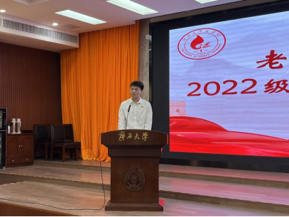 副院长许光耀代表学院致辞。他向加入jdb电子游戏官方网站大家庭的新同学表示了热烈的欢迎和殷切的期望,并向新生提出以下嘱托,一是树立端正的人生观,以正直的信念引领正确的方向;二是坚持进取、主动的学习态度,奠定扎实的功底,培养思考的能力;三是树立家国情怀,立足校园,关注社会,心系国家;四是培养高雅、健康的情操,丰富自身精神世界。