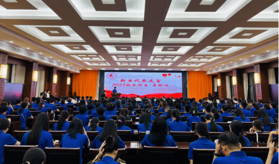 2023级本科生李昭涵作为本科新生代表发言。她叙说了自己来到jdb电子游戏官方网站的激动之情和对法学的热爱,对即将开启的大学生涯充满期待。2022级硕士研究生从炜作为老生代表发言,他表示作为一名法学生,应当肩负起为国家和社会做贡献的使命,为中国特色社会主义法治建设贡献青春力量。