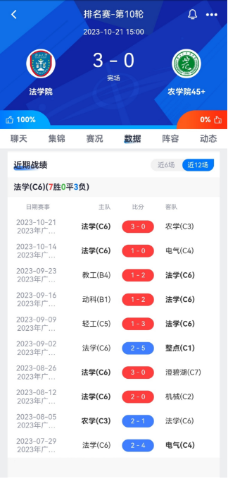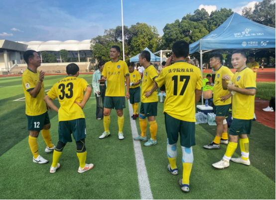 本届比赛开始后,法学校友队在小组赛阶段开局并不顺利,前两场面对电气、农学两支强队均告失败。两连败之后,球队逐步调整出状态,以六战三胜三负积9分排名小组第四的成绩进入第二阶段淘汰赛。人员齐整的法学校友队配合愈发默契,体现出越来越强的整体实力,在1/8决赛和1/4决赛中,以2比1的相同比分先后击败动科校友队和教工足球队,闯入四强的同时,也刷新了法学校友足球队参加校友联赛历史上的最好成绩。半决赛再次面对卫冕冠军电气校友队,在80分钟实力相当、场面胶着的鏖战中,法学校友队由4号朱定民抓住机会推射空门一锤定音,最终以1比0获胜闯入决赛。