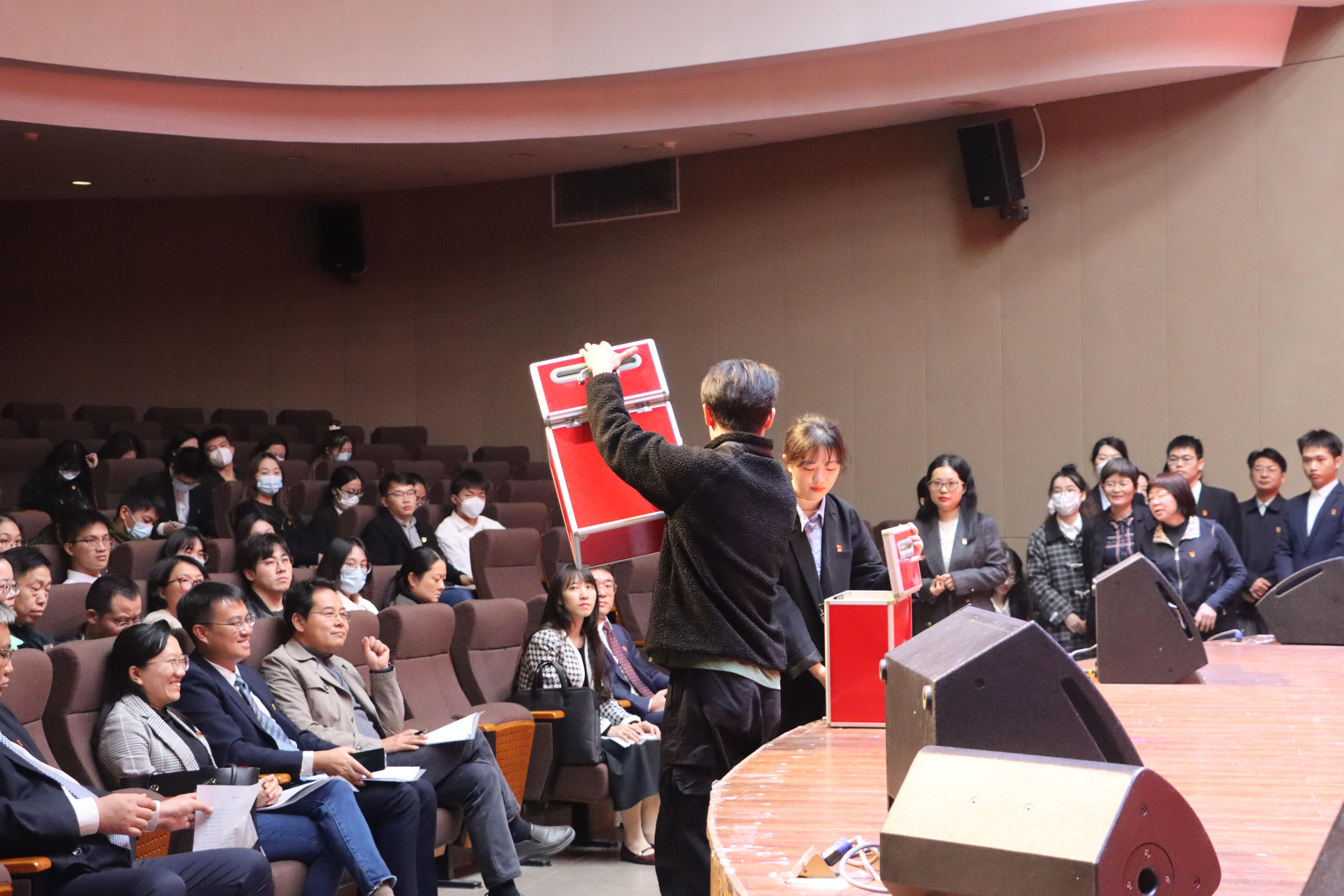 凝心聚力担使命,奋楫扬帆新征程。1月3日下午,中国共产党jdb电子游戏官方网站党员大会在大学生活动中心小剧场胜利召开。会议由院党委副书记韦兴剑主持,学院120名党员参加会议,校党委组织部副部长雷圆媛、校纪委办温健纯到会指导。