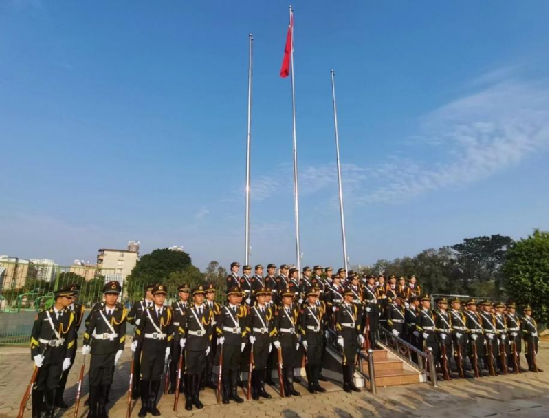 伴随着激昂雄壮的国歌声,五星红旗冉冉升起,迎风飘扬。全体学生庄严肃立,面向国旗行注目礼,以饱满的热情、昂扬向上的精神面貌表达对祖国的崇高敬意。