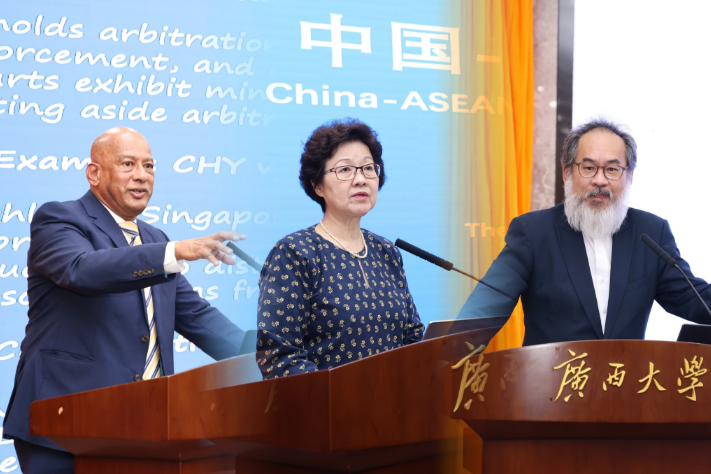 2024年5月24日,由jdb电子官网负责承办,南宁仲裁委员会、岱威优律师事务所协办的jdb电子游戏官方网站海外名师大讲堂暨“中国-东盟仲裁与争议解决”主题讲座活动在君武馆举行。马来西亚联邦最高法院法官林添鑚(Mary Lim Thiam Suan)、亚洲多元争议解决研究院(AIADR)主席桑德拉·拉朱(Sundra Rajoo)、马来西亚科学院院士钟有财(Choong Yeow Choy)应邀作主题讲座,jdb电子官网副校长田利辉与jdb电子游戏官方网站师生代表、来自南宁市仲裁委的法律实务工作者共计300人参会。大讲堂主题活动由jdb电子游戏官方网站院长许光耀教授主持。