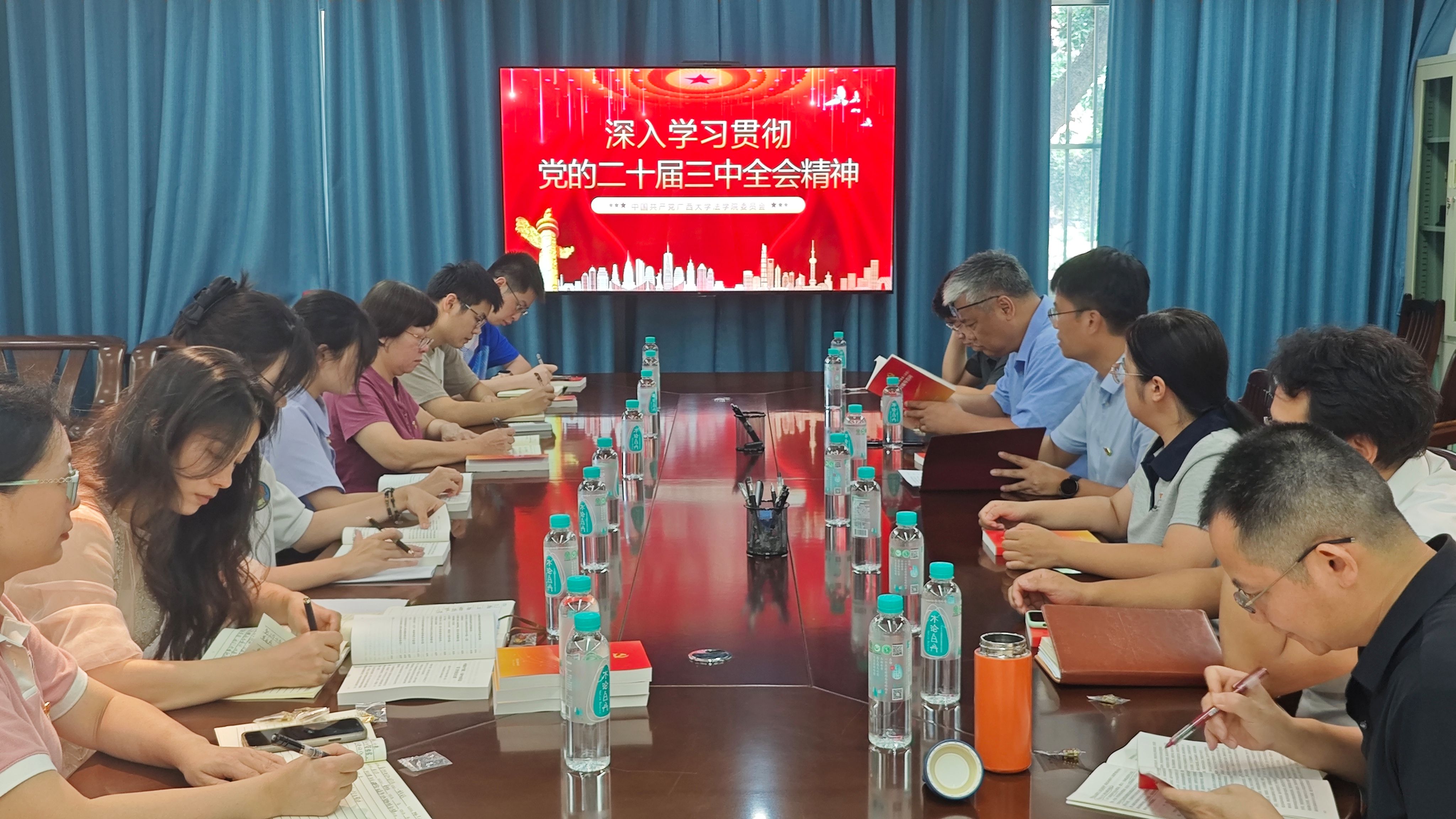 会议强调,要按照学校党委的部署和要求,结合jdb电子游戏官方网站工作实际,抓好《决定》的贯彻落实。一是要全面深入学。全院上下要深刻认识党的二十届三中全会的重大意义,准确把握全会精神实质,要把学习贯彻党的二十届三中全会精神作为当前和今后一个时期的重要政治任务。学院各党支部、各教研室要深入学习贯彻习近平总书记在党的二十届三中全会上的重要讲话精神,积极做好宣传宣讲、研究阐释等工作。二要持续把高等教育改革创新摆在关键位置。要结合学校第十次党代会提出的“全面争创一流十大工程”的部署,积极推进法学教育教学改革:坚持深化人才培养模式改革,优化涉外法治人才培养方案,进一步建立健全“三全育人”体系;坚持提升学术研究能力,以学科学位点建设为指引,促进学科交叉融合,努力提升学术成果的产出效率;坚持推进教育评价改革,突出教育教学实绩,引导教师潜心教书育人,改革学生评价方式,促进学生全面发展;坚持加强和完善师资队伍建设,继续加大高层次人才引进力度,优化教师队伍结构,完善教师培养培训体系;坚持推进对外开放合作办学,加强国际学术交流,提升涉外法治人才培养合作项目落实落地,拓展学生国际视野,增强法治文化交流能力。三要认真落实学校部署要求做好各项工作。对标年初制定的重点工作任务,强化师德师风建设,牢牢守住意识形态主阵地,切实维护校园安全稳定与和谐,结合课程思政专项巡视整改任务清单,强化建章立制,不断完善学院治理体系,提升治理能力。