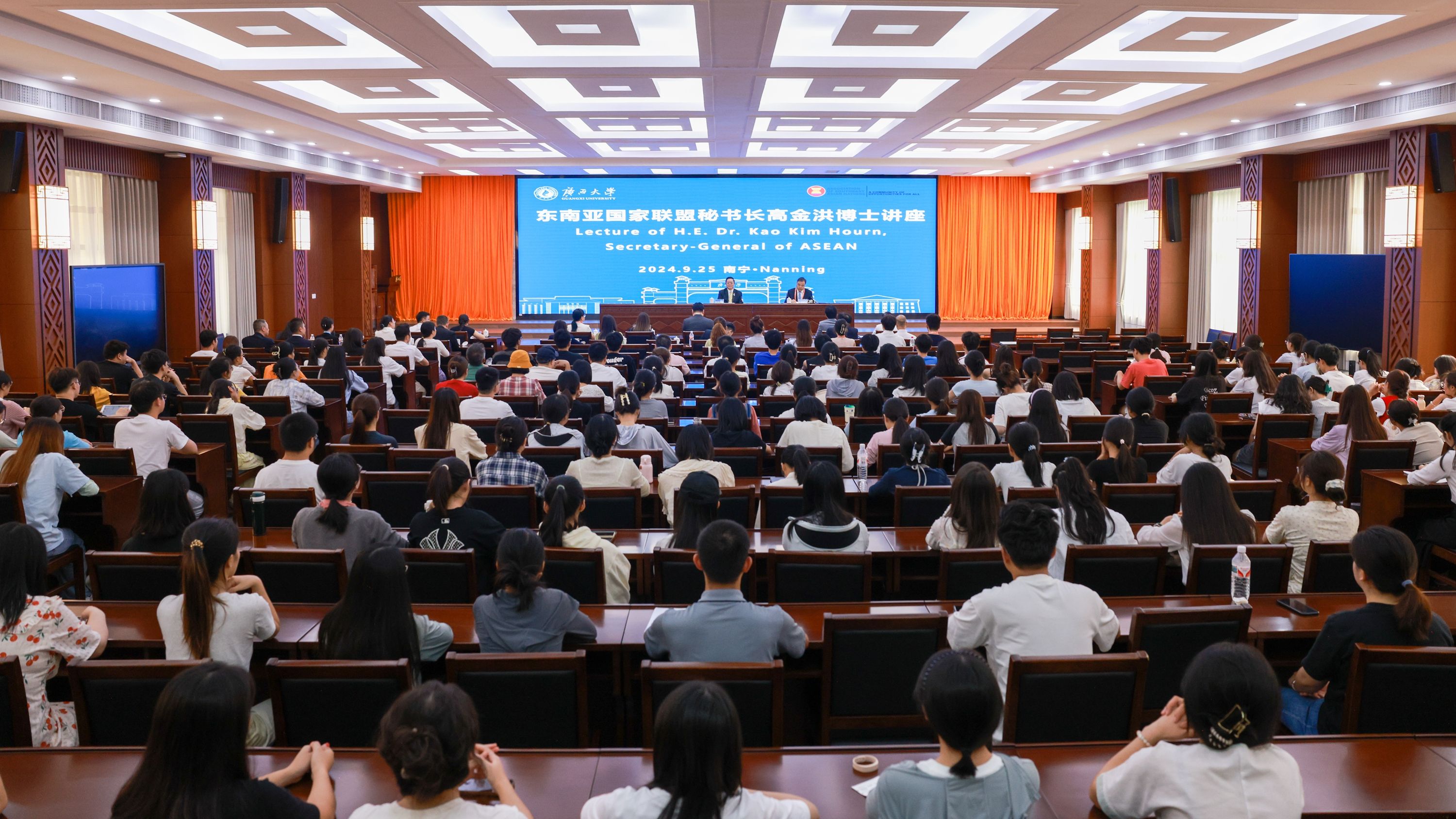 随后,高金洪向jdb电子游戏官方网站200余名师生作了题为“增进友谊与合作:人文交流在中国-东盟关系中的作用”的讲座。jdb电子官网副校长肖建庄主持讲座。讲座中,高金洪深入浅出地阐明了中国与东盟国家的交流不仅仅是政府间的交流,经贸的交流,更重要的是人与人之间的沟通和交流。他强调今年是中国-东盟文化交流年,双方需持续关注教育交流和数字交流等各方面的合作与交流,同时再次提出了自己对加强中国-东盟间交流的“7P”(即目的、人文、过程、成果、提升、定位、表现等7个方面)理念,加深双方人文交流的深度和广度。