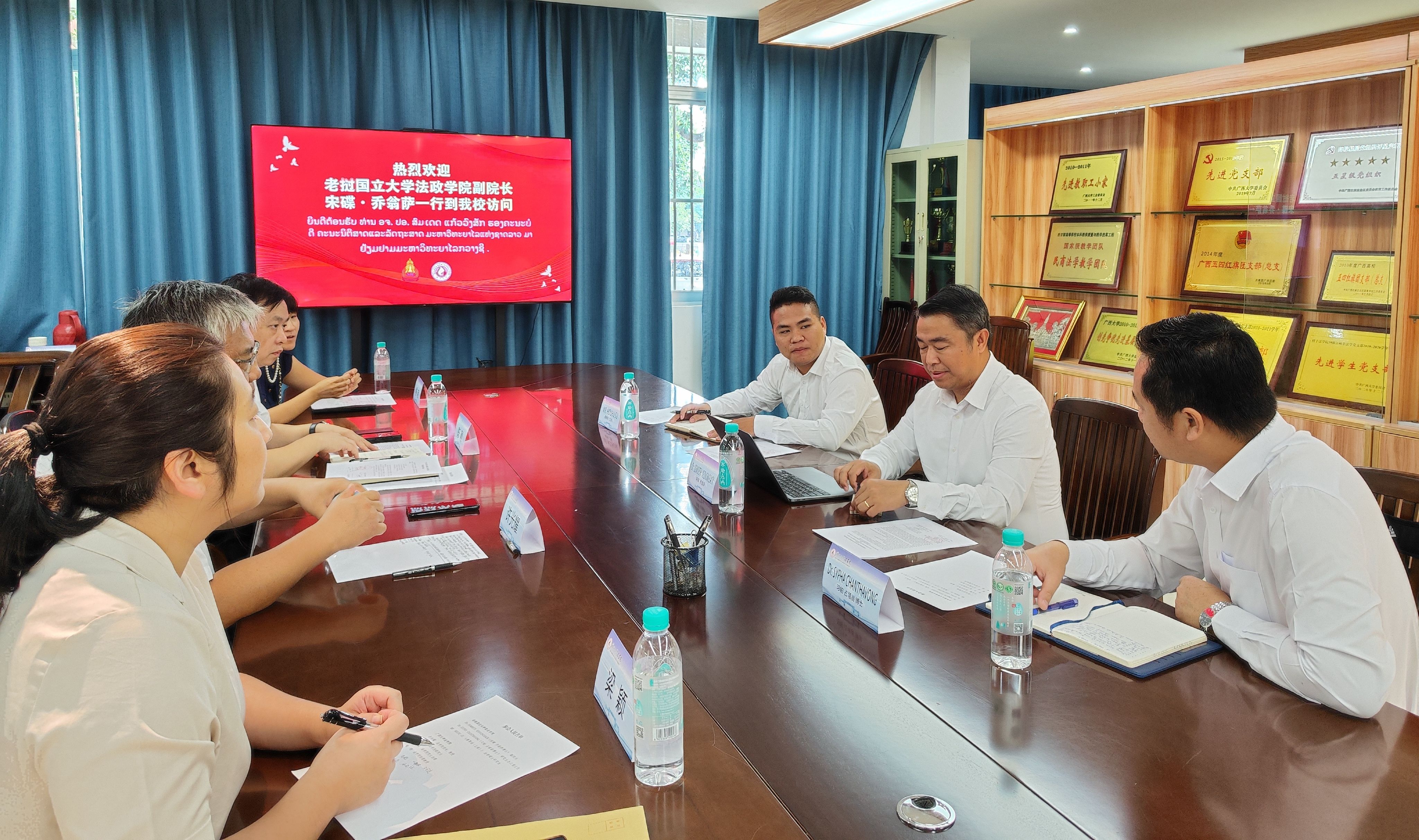 9月28日至10月1日,老挝国立大学法政学院副院长宋碟·乔翁萨(Somdeth Keovongsack)、jdb电子游戏官方网站研究生部主任西帕·夏塔翁(Sypha Chanthavong)一行三人来访jdb电子官网,并与jdb电子官网师生代表举行学术报告和座谈交流活动。