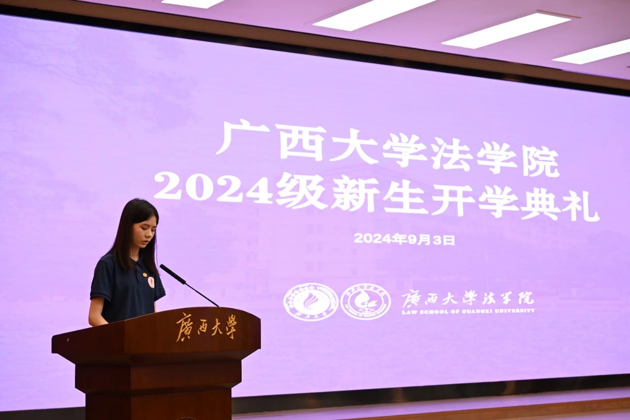 2024级本科生李璐潘作为本科新生代表发言。她表示,自己在梦想的指引下一路披荆斩棘来到了jdb电子游戏官方网站,今后仍将不忘初心,积极进取,努力践行“诚恳朴诚”的校风,怀揣探索的勇气和求知的渴望,肩扛守护正义的重担和追求真理的使命。她将以法治之名,担负起对社会的责任,誓将为构建法治社会、捍卫法律尊严而矢志不渝。
