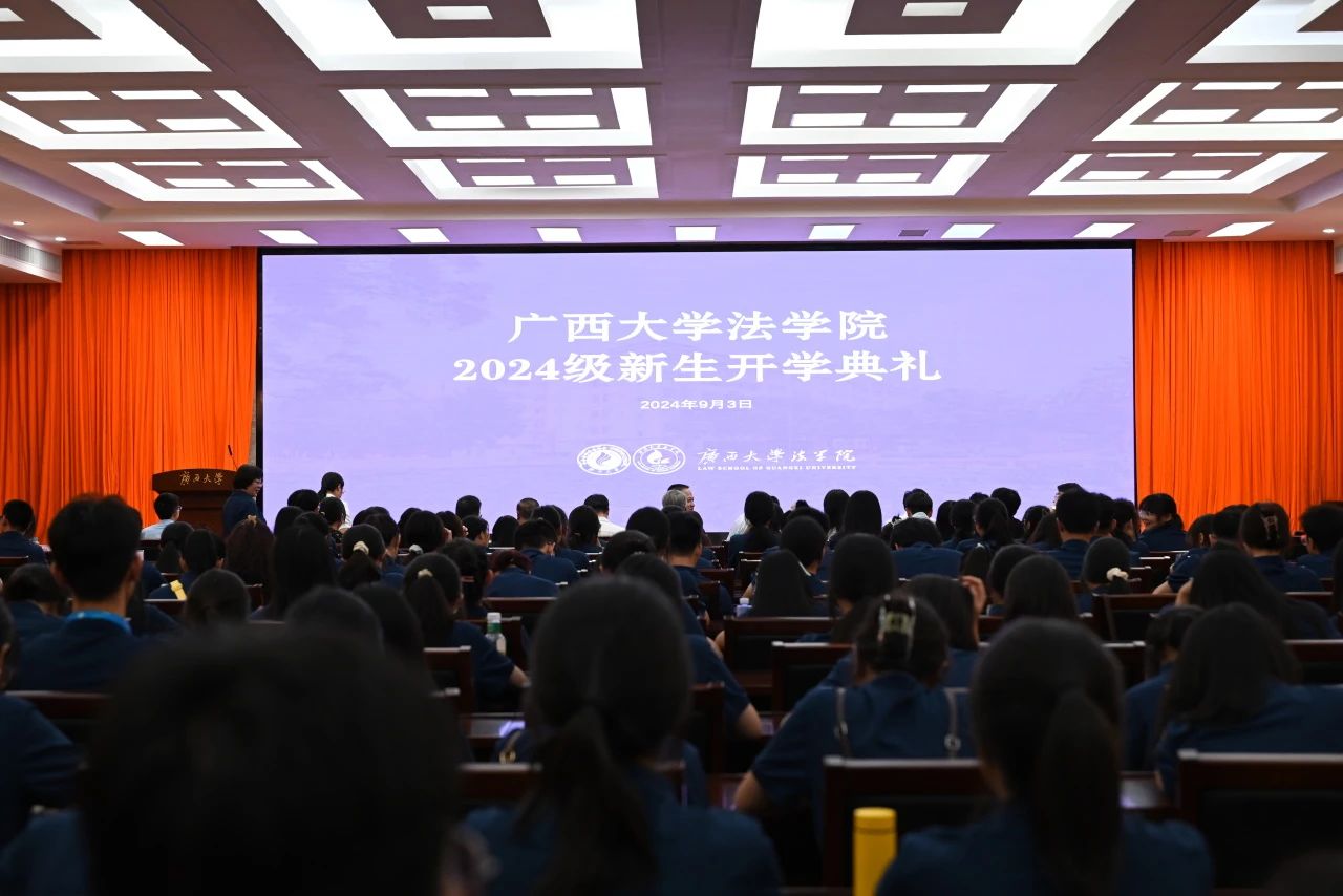 迎八方学子,育法学英才,2024年9月3日晚,jdb电子游戏官方网站2024级新生开学典礼在君武楼玉林厅隆重举行。jdb电子游戏官方网站党委书记余云宇、院长许光耀等院党政领导班子成员,教师代表及优秀校友代表出席,jdb电子游戏官方网站2024级三百余位新生同学参加典礼。典礼由院党委副书记韦兴剑主持。