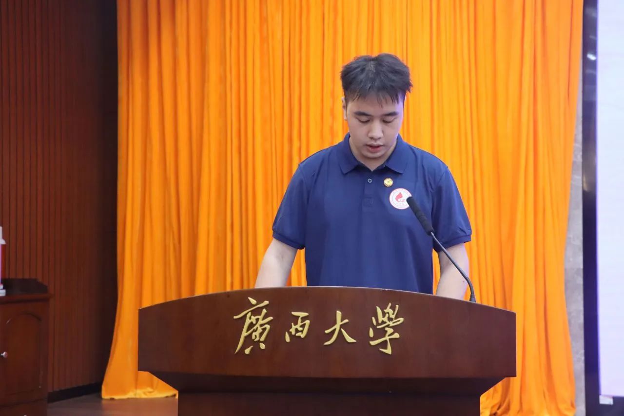 2024级法学硕士研究生黄建程作为研究生新生代表发言,他表示新生们应怀揣理想,脚踏实地,让每一步都坚实有力,共绘人生华章。他希望新生们破晓而出,逐梦翱翔,让青春在奋斗中绽放光芒;扬帆学海,破浪前行,以智慧为帆,以勤奋为桨,到达成功彼岸。