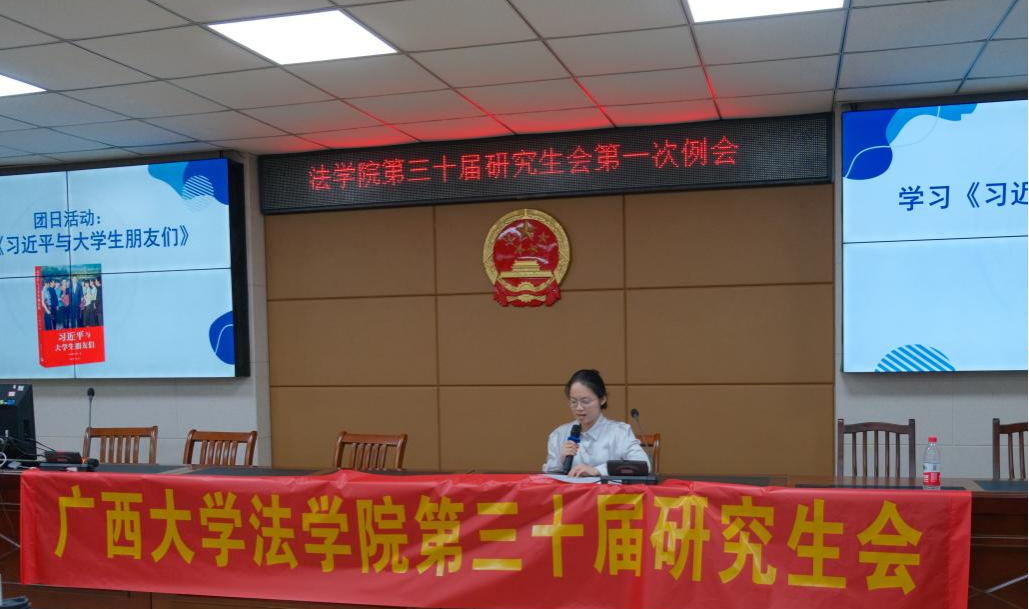 会议伊始,研究生会全体成员共读《习近平与大学生朋友们》一书,研究生会主席团成员韦梦琦详细介绍了该书的主要内容,并结合自身感悟分享了学习心得。韦梦琦认为研读《习近平与大学生朋友们》有助于深刻领会习近平总书记关于青年工作的重要论述,为青年大学生成长为堪当民族复兴重任的时代新人指明了方向。随后,全体成员观看了时政微纪录片《温暖——习近平与大学生朋友们》,通过影像资料回顾习近平总书记多次走进校园与青年学子交流的生动场景,深刻感受习近平总书记对青年一代的关怀与勉励。研究生会成员纷纷表示,将牢记习近平总书记的嘱托,以吾之青春,担国之重任。