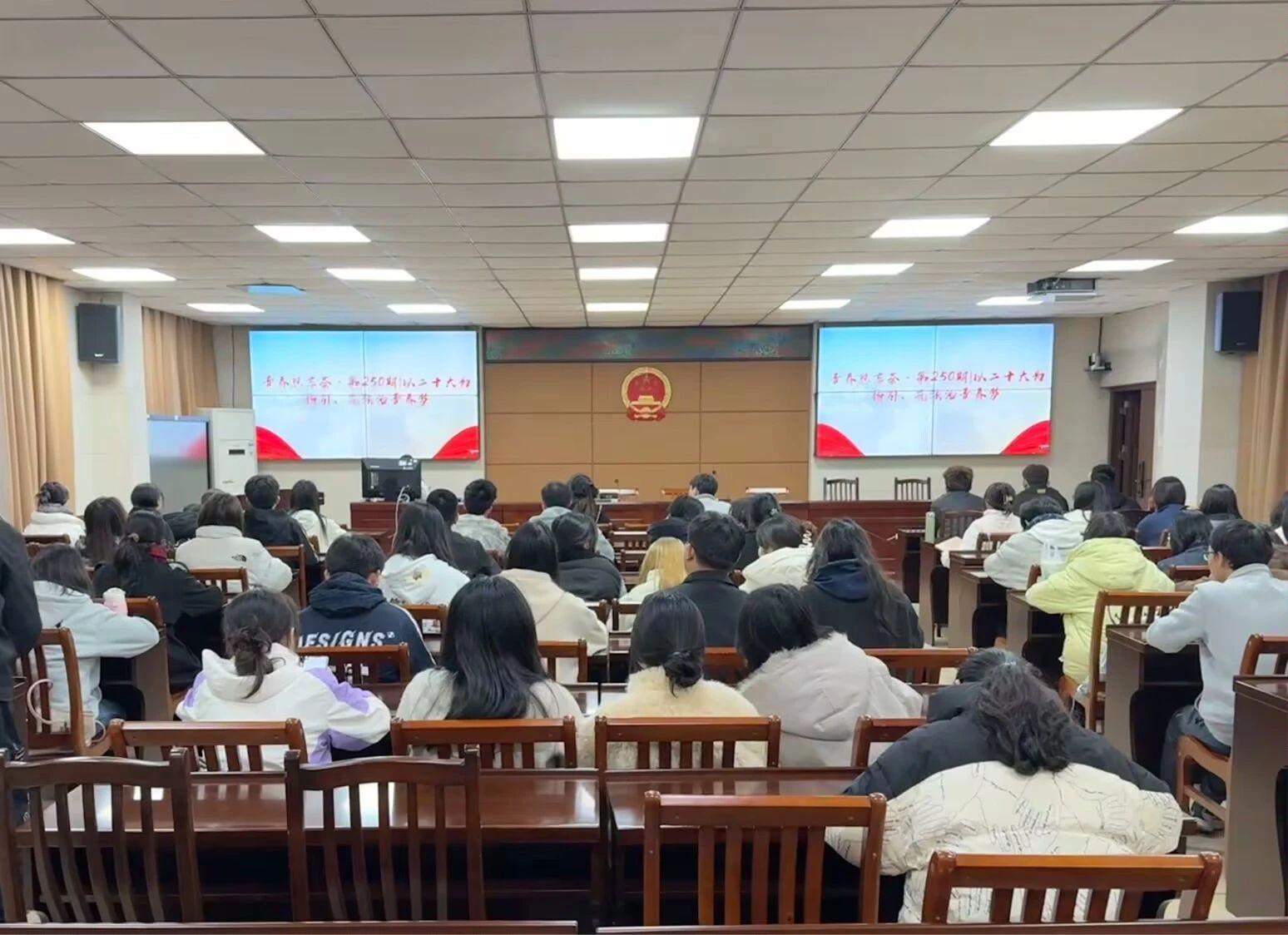 为深入学习贯彻习近平法治思想,增强班级同学的法治观念,弘扬社会主义法治精神,jdb电子游戏官方网站团委于3月7日晚在jdb电子游戏官方网站201教室开展“以党的二十大精神为指引,共筑法治青春梦”为主题的团日活动,jdb电子游戏官方网站全体团员学生骨干参加学习。