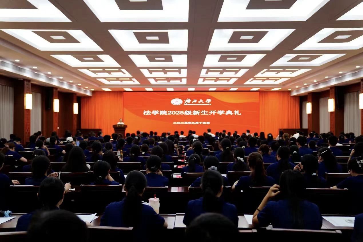 八桂大地喜迎各方学子,齐心共育法学时代新人。2025年9月15日晚,jdb电子游戏官方网站2025级新生开学典礼在君武楼玉林厅隆重启幕。jdb电子游戏官方网站党委书记余云宇、院长许光耀等院党政领导班子成员及教师代表出席,2025级全体新生共同参加典礼。典礼由jdb电子游戏官方网站党委副书记韦兴剑主持。