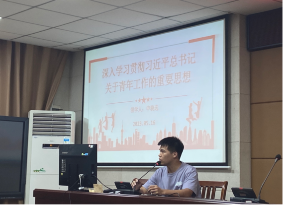 会议伊始,院团委书记申孟鑫向大家阐述了《论党的青年工作》一书的重要意义,领学了《建团百年来党领导青年工作的光辉历程和基本经验》,阐释了内容的核心要义和精神内涵。引导青年积极承担时代和青春赋予自己的责任使命,在党和人民最需要的地方挥洒热情与汗水。会上,申孟鑫老师对学生会所开展的各项工作及在政治性、服务性、能力值方面实现的有效提升表示肯定,同时从遵守纪律规定以践行先锋模范、提高政治站位并强化责任担当、在锻炼中提高自身能力三个方面对学生骨干的学习和工作提出要求,希望学生骨干能充分发挥沟通学院与同学之间的桥梁纽带作用,落实学生骨干全心全意为同学服务的宗旨。