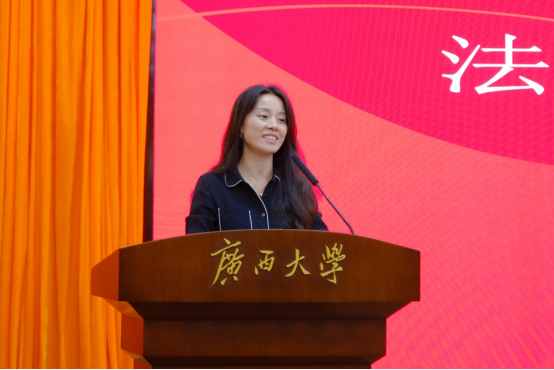 教师代表刘旭老师在发言中引用学界经典案例,结合法学专业特色与学术前沿,为新生们搭建起从校园到专业领域的认知桥梁,既传递了对新生的殷切期望,也表达了学院教师将全力助力同学们成长成才的决心,鼓励新生在学习生活中积极与师长沟通,主动破解难题、提升自我。