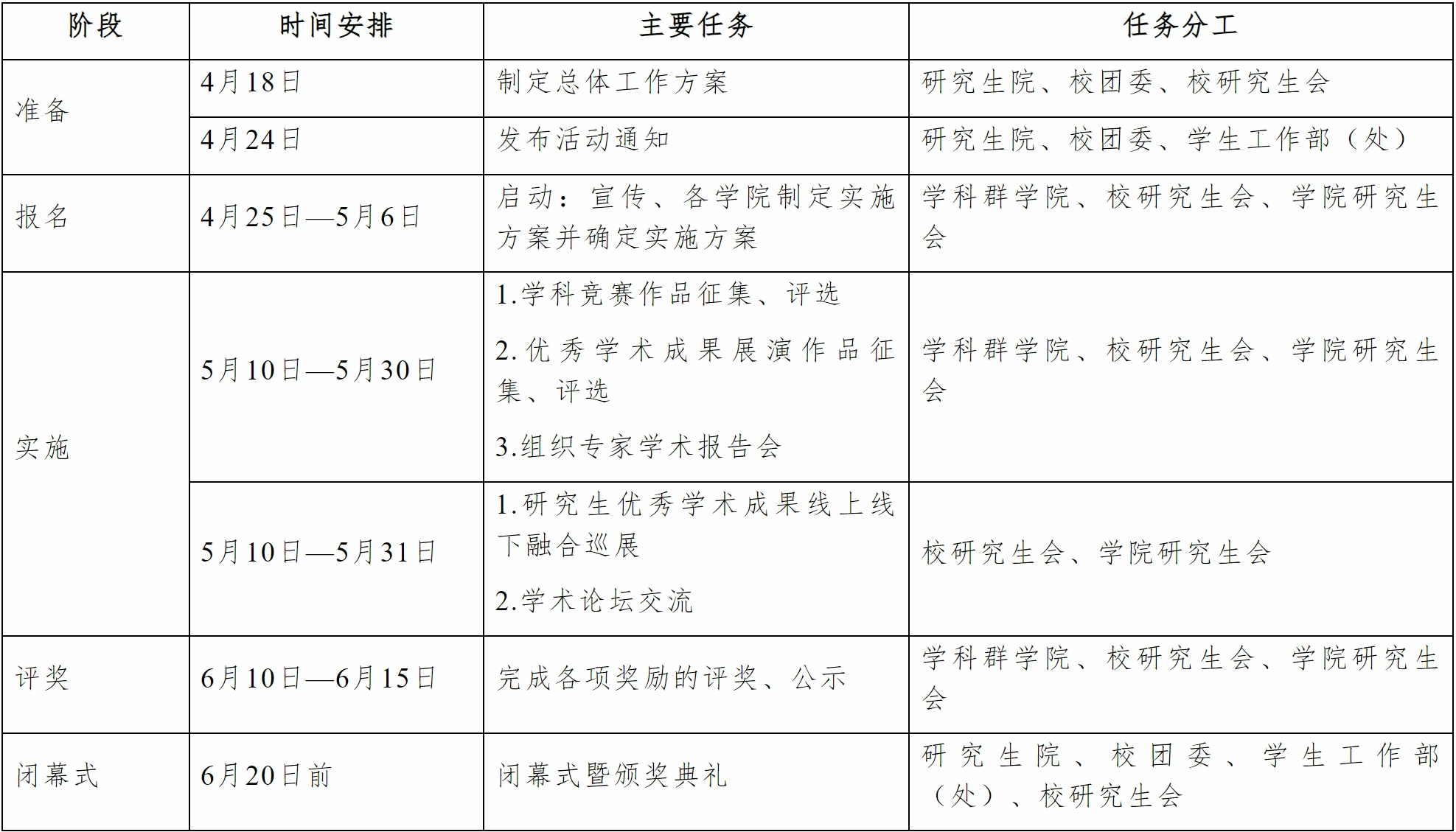 负责制定第三届研究生学术文化节活动方案,指导活动全过程、开闭幕会等工作,提供政策与资金支持。