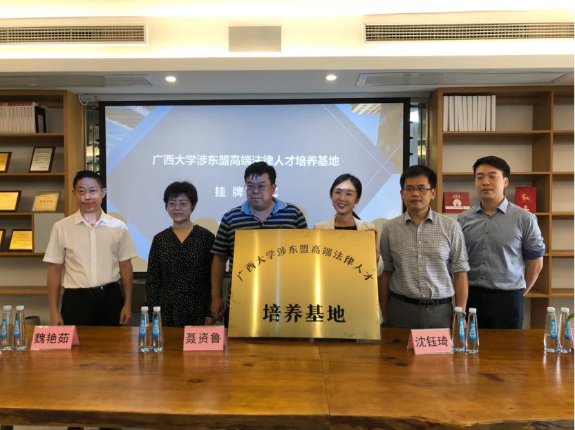 2021年 7月13日下午, jdb电子游戏官方网站院长聂资鲁教授一行4人到访 广西 沵 达律师事务所 ,双方成功举行全面合作洽谈会,并举行了隆重的jdb电子游戏官方网站涉东盟高端法律人才培养基地挂牌仪式。