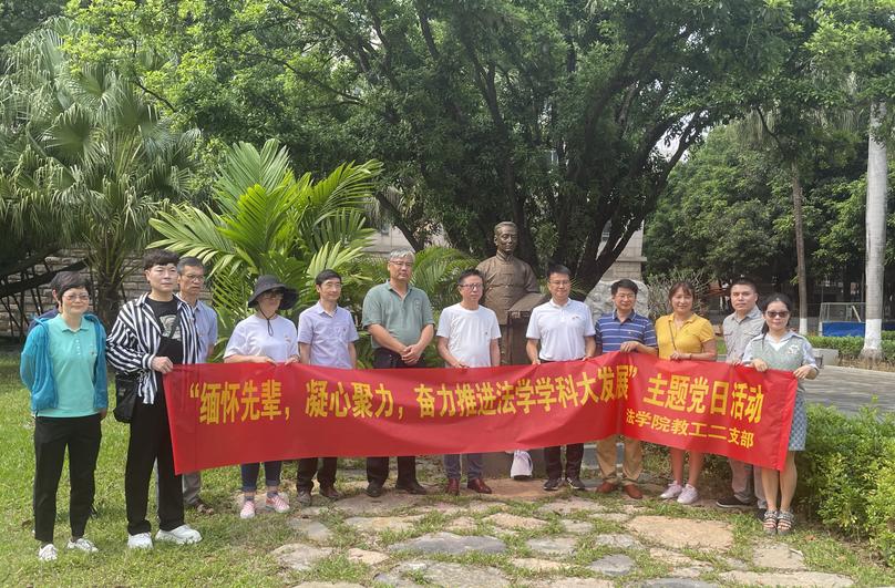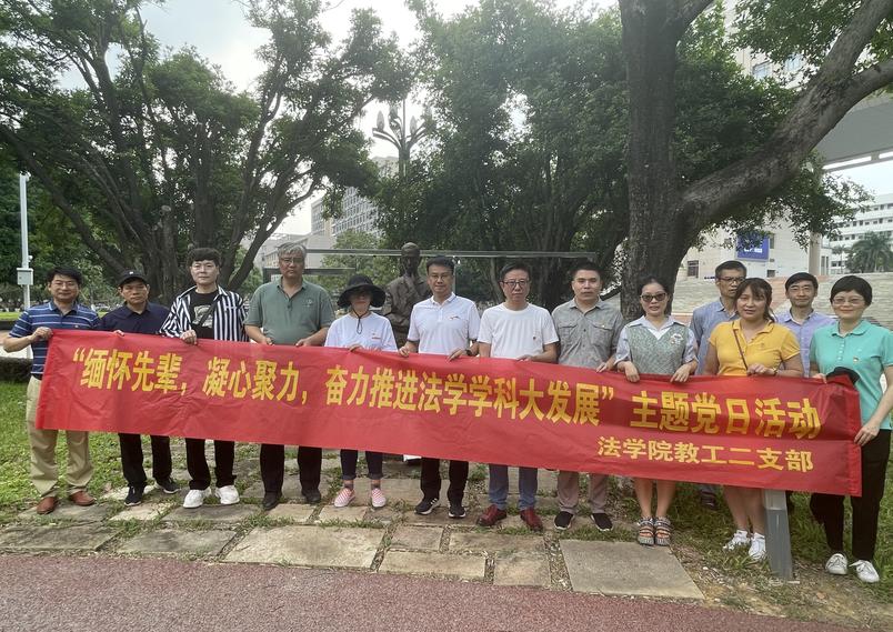 4月26日,jdb电子游戏官方网站教工二支部在jdb电子官网育才广场顺利开展“缅怀先辈,凝心聚力,奋力推进法学学科大发展”主题党日活动,深切缅怀白鹏飞老校长和张志让教授,为推进法学学科发展凝心聚力。支部全体党员、入党积极分子代表共13人参与活动。
