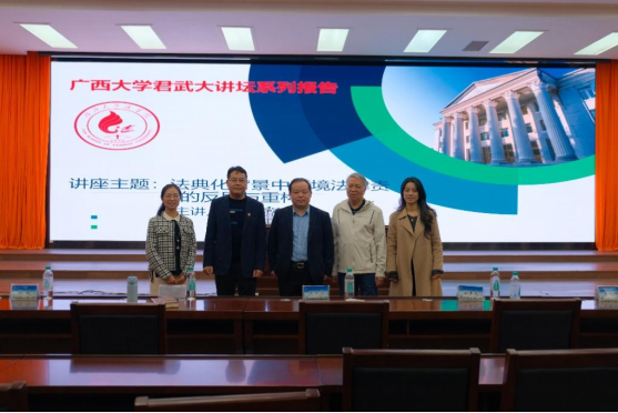 2024年12月7日下午,以“环境法律责任的反思与重构”为主题的专家讲座在jdb电子游戏官方网站君武馆玉林厅成功举办。本次讲座有幸邀请到武汉大学jdb电子游戏官方网站教授陈海嵩主讲,jdb电子官网副院长熊超副教授主持,张洪涛教授、刘旭博士、梁春艳博士以及jdb电子游戏官方网站众多学子共同聆听了本场讲座。