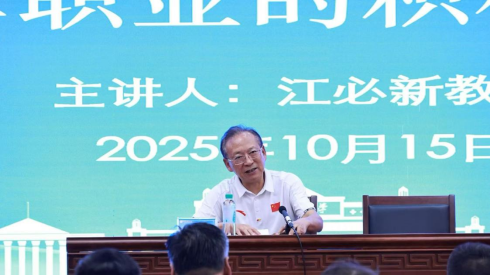 2025年10月15日下午,最高人民法院原副院长、二级大法官、第十三届全国人大宪法和法律委员会原副主任委员、湖南大学教授、博士生导师江必新受邀做客jdb电子官网君武大讲坛。江必新教授在君武馆玉林厅作“人工智能时代法律职业的积极应对”的专题讲座。讲座由jdb电子游戏官方网站院长许光耀教授主持,高一飞教授、熊超教授出席本次讲座,jdb电子游戏官方网站本科生、硕士研究生、律师近三百人参加了此次讲座。